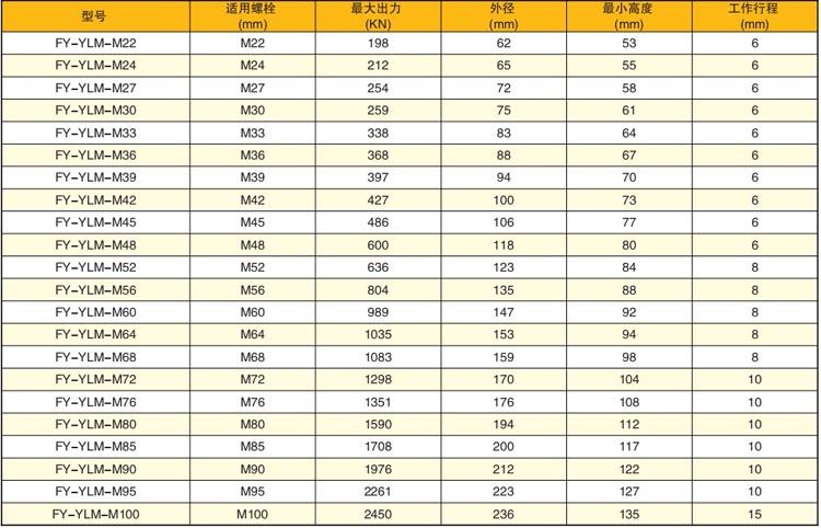 FY-YLM型液壓螺栓拉伸器技術參數(shù):
